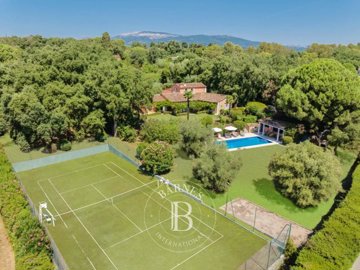 Édifiée sur un terrain d’environ 5 000 m², elle offre un court de tennis, une piscine entièrement rénovée ainsi qu’un vaste garage fermé pouvant accueillir jusqu’à 5 véhicules.