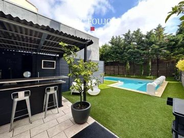 Idéalement situé à 5 min à pied de la gare Tgv de Bordeaux, maison de ville en parfait état de 300 m² sur son jardin de 400 m² avec piscine et bar et son studio indépendant. Elle se compose d'une entrée par la rue ou via son portail motorisé, un double séjour avec cheminée, cuisine ouverte entièrement équipée, salle de billard ou salle a manger, une chambre avec sa salle de douche, wc à l'entresol. A l'étage, deux chambres avec salles de douches, un grand dressing ou chambre, une suite parentale avec son jaccuzi et sa douche à l'italienne. Un coin bureau desservant au second étage les combles aménagés en chambre avec salle de douche et wc, salle de jeu. Au sous sol, salle de gym, cave a vin, atelier équipé, buanderie. Cour pavé avec borne de recharge pour voiture électrique. Studio indépendant équipé de 30 m². Piscine chauffée avec son robot, terrasse avec son bar équipé, barbecue, four à pizza, écran géant. Entièrement climatisé. Système son. Alarme. Caméra extérieur. Toit en panneau solaire. Ballon thermo dynamique.