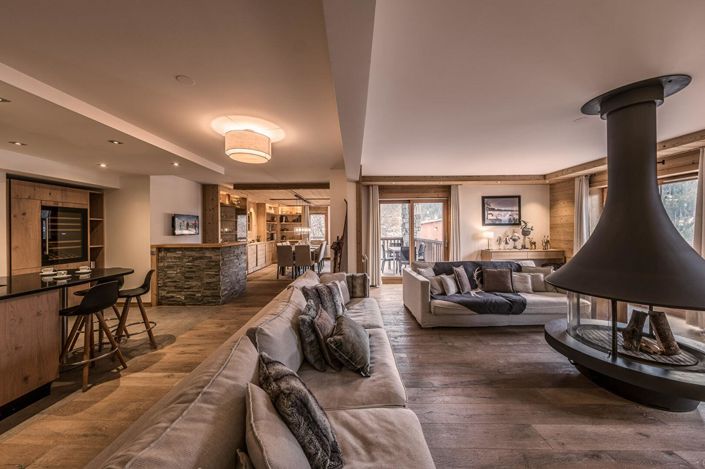 Par la qualité de ses matériaux, la cohérence de ses espaces et sa relation directe au paysage, cet appartement s'inscrit comme une adresse résidentielle aboutie au sein de Courchevel Moriond.