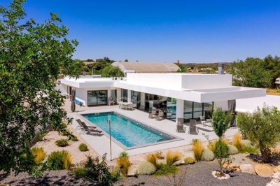 Designed for comfort, convenience and modern luxury, this single-level villa features a thoughtful layout and high-quality finishes throughout. The main living area includes an open plan kitchen, dining and lounge space with retractable floor-to-ceiling glass doors that fill the interiors with natural light and open to the pool terrace. A pellet burner fireplace adds warmth and character. For practicality, there is a laundry room with a linen closet and a full guest bathroom. The villa offers four bedrooms, two with en suite bathrooms. Each has built-in storage and a layout designed for privacy and comfort. The master bedroom includes an en suite with double sinks, a walk-in closet and direct outdoor access. Outdoors, a saltwater pool is surrounded by a low-maintenance garden. A two-car carport provides shaded parking, and a storage shed adds convenience.