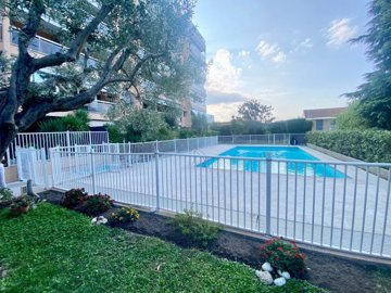 Le Cannet, dans une jolie résidence avec piscine, appartement en étage élevé comprenant un séjour, une cuisine équipée, une chambre et sa salle d'eau, WC.
