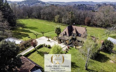Proximité immédiate de Sarlat. Indéniable charme pour cette propriété entièrement et récemment restaurée, avec goût et élégance. Une maison principale de près de 185 m2 en pierre de pays, à l'architecture typique du Périgord, et largement modernisée avec des prestations haut de gamme, en faisant un lieu particulièrement agréable et très actuel, dans une ambiance de qualité et de calme. Un jardin superbe, fleuri et arboré avec de multiples essences, au coeur d'un parc de plus de 5 hectares composé de bois et de prairies, avec piscine chauffée, dépendances, et gîte, à l'écart, en toute intimité. La maison principale, agencée de façon moderne, est particulièrement lumineuse et offre de larges espaces de vie ouverts sur les extérieurs, une cuisine équipée, ainsi qu'une chambre parentale de plain-pied avec sa salle d'eau privative et son dressing. A l'étage, 3 chambres, une salle d'eau, un wc, et un espace bureau, complètent le potentiel de cette maison chaleureuse et à l'atmosphère conviviale. Les prestations techniques sont au diapason de la qualité de la restauration. Installation de panneaux solaires (dans une partie du terrain non visible de la maison), chauffage au sol, climatisation, réserve d'eau, piscine chauffée. Enfin, le gîte, de 45 m2, permet une activité de location touristique ou à l'année, ou bien entendu la réception d'amis, celui-ci étant équipé, chauffé, et totalement indépendant. La modernité ainsi que les éléments techniques, ne pourront remplacer l'impression et le ressenti dans une maison. C'est une véritable invitation qui vous est faite ici. Cette maison vous séduira sans aucun doute par son ambiance et la douceur de vivre qui y règne, le parc vous y accueillant sans réserve, tout en harmonie également. Ce calme, ces prestations, ce charme, et cet emplacement... Cette maison est un réel petit bijou.Visite virtuelle 3D autonome et vidéo, disponibles sur demande.
