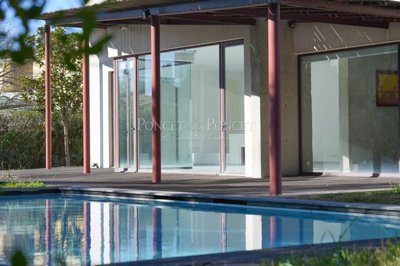 Située sur les hauteurs de Montpellier, à proximité des hôpitaux et du tramway, cette villa d'exception au design audacieux s'étend sur 240 m². Elle comprend 4 chambres, un vaste salon, une grande cuisine familiale, et se distingue par un volume impressionnant. Les matériaux nobles tels que le bois, le béton, le métal et la pierre sont sublimés par la lumière naturelle et l'ampleur des espaces. La façade entièrement vitrée offre une vue panoramique sur le jardin et la piscine, dans un cadre paisible. Le soir, les éclairages du jardin s'harmonisent avec ceux de la ville, créant une atmosphère magique. Un emplacement unique, désormais introuvable, pour cette villa conçue par un architecte avant-gardiste. Dossier disponible sur demande.