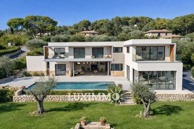 Mougins - Située en position dominante, avec une vue panoramique sur les collines environnantes, dans un secteur résidentiel, cette villa contemporaine de 314m2 env. Est édifiée sur un terrain de 1887m2 avec piscine.
