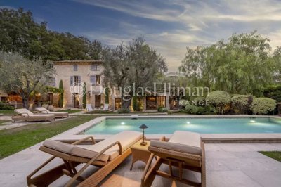 La propriété se compose d’un terrain privé et à l’abri des regards de 3,332m², accueillant une bastide en pierre (Mas) datant de 1850, offrant une surface habitable d’environ 233m².