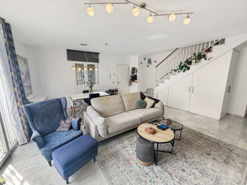 The first floor features a generous lounge-dining area, a modern kitchen with pantry, a bathroom with shower, and additional storage under the stairs. Upstairs, the master bedroom benefits from skylights and a balcony with partial sea views. A second lounge/office—originally a bedroom—and an additional bathroom offer adaptable living space. The upper floor was previously configured as three bedrooms and two bathrooms, giving the option to restructure according to your needs.