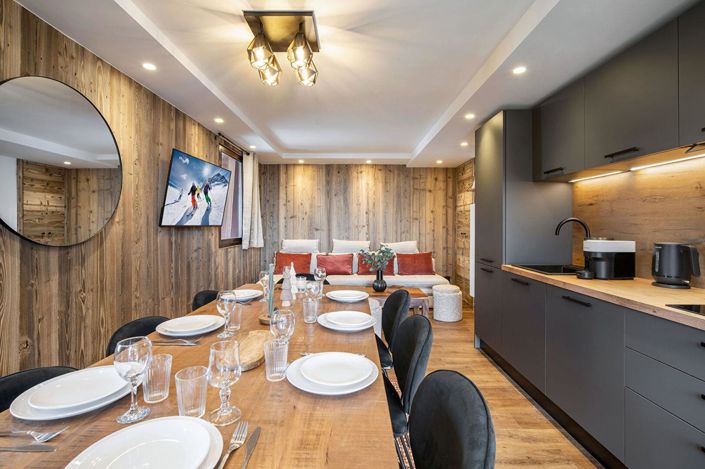 Niché au sommet d'une résidence calme et idéalement située au coeur de Val Thorens, ce duplex rare de 78 m² (58,06m² carrez) conjugue raffinement, confort et exclusivité. Entièrement rénové avec des matériaux nobles et des finitions haut de gamme, il offre une atmosphère chaleureuse et contemporaine.