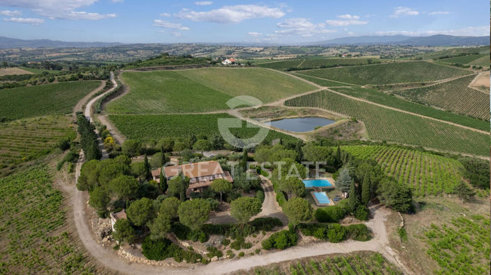 The villa is made up of three floors. On the ground floor there is a living area with bathroom, a kitchen and, separately, the caretakers' house. On the first floor there are six double bedrooms, all with ensuite bathrooms. The rooms are treated with attention to the smallest details and painted with taste and a variety of colors. The basement is mainly used as a relaxation area, with a billiard room, a Turkish bath and a welcoming gym; a part is intended for technical rooms. Also worth appreciating is the garden, with attention to detail, which offers various areas where you can eat outdoors or relax in the shade of the trees. Also outside there is a large swimming pool divided into a children's area, a hydromassage tub and a large swimming pool with a lovely waterfall. The pool area also offers covered areas where you can spend moments of relaxation. A few hundred meters lower than the main villa, we find a large building of approximately 1,200 sqm on two levels. On the partially basement floor there is a cellar, of approximately 800 sqm, with a single room entirely made with terracotta vaults. The upper floor is currently used as a tasting room, offices and caretakers' home. The property is completed by almost 11 hectares of vineyards, which entirely surround the property and give a feeling of peace and harmony with the surrounding area. More information on request.