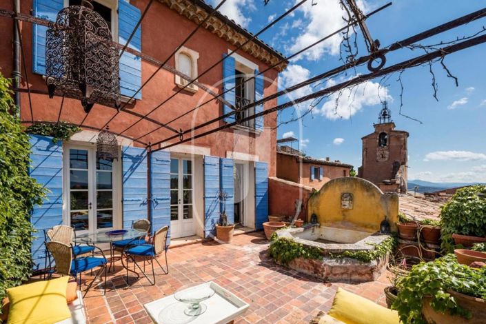 Maison de village historique particulière du XVIIe siècle à Roussillon un village au cœur de la Provence, célèbre dans le monde entier pour ses falaises d'ocre rouge. La maison fait partie d'un ancien château et offre une vue époustouflante sur le paysage du Luberon.