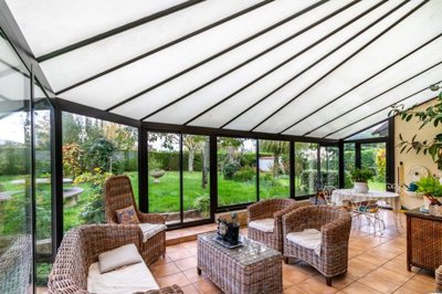 L’étage comprend une mezzanine de 13 m2, une chambre spacieuse de 18 m2 et un bureau mansardé. Une belle véranda de 32 m2 prolonge agréablement la pièce de vie, idéale pour profiter du jardin quelle que soit la saison. Le garage attenant de 20 m2 dispose d’un évier et d’un galta.