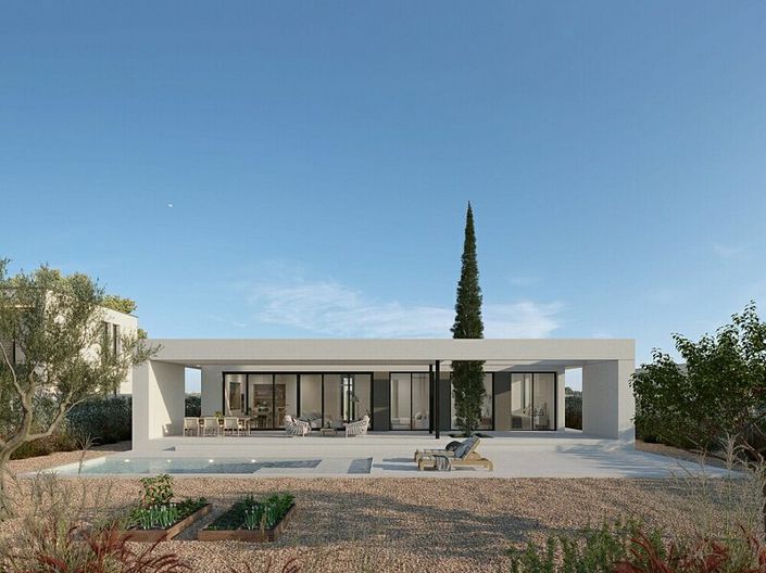 These stunning detached villas offer 3 bedrooms, 2 bathrooms and toilet. A fully fitted and equipped kitchen. Air conditioning. Walk in mastersuite closet. Landscaped gardens. Large 32m2 ground floor terrace. Private garage. Substantial Plots from 882m2.