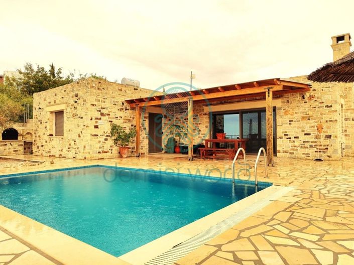 Property Code: 1-560 - FOR SALE in Timpaki Kamilari 650.000 € . This 85.00 sq. m. is on the floor and features 2 Bedrooms, Livingroom, 2 Bathrooms The property also boasts Heating system: Individual - Petrol, tiled floor, unobstructed view, Window frames: Aluminium, garden, fireplace, swimming pool, A/C, insect screens, solar-powered water heater. Plot area: 500 s.q. Distance from sea 1000 meters,