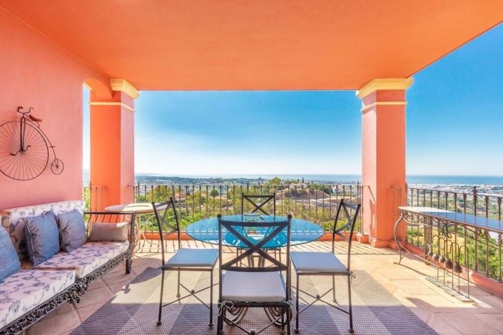 The property features 3 large bedrooms, all with en-suite bathrooms plus a guest toilet. Great size living dining room with open fire place and fully fitted kitchen that opens up to terrace with stunning panoramic views towards the sea. - REF: SMS11071