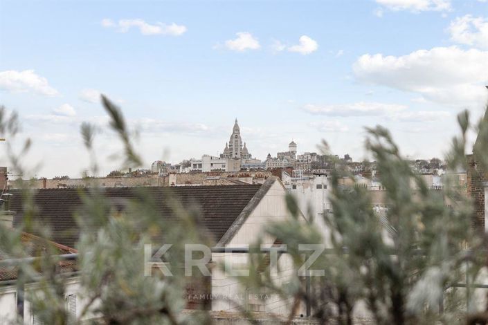 Paris 18ème - Aux 2 derniers étages d'un immeuble récent, duplex traversant d'environ 110m2 carrez et 75m2 de terrasse et balcon sans vis à vis (surface pondérée à 130m2). Il se compose d'une entrée, double séjour, cuisine équipée. Suite avec salle d'eau. A l'étage, une mezzanine, 2 chambres, une veranda (pouvant être utilisé en chambre d'ami/bureau), salle de bain. Atelier/Cave au rez-de-chaussée. Parking pour 1 stationnement. A proximité immédiate des transports, parcs et commerces.