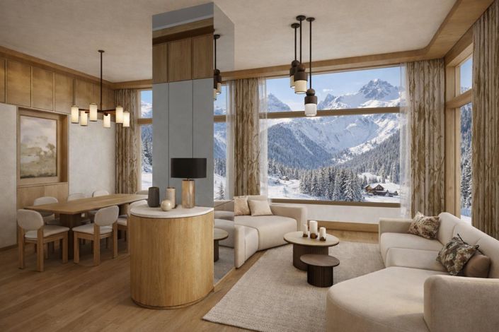 En bordure directe de piste, sur la très recherchée route de la Renarde, cet appartement entièrement rénové s'inscrit dans une relation évidente avec la montagne et le centre de la station, accessibles à pied.