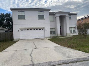 This spacious home offers a blend of comfort and elegance. Featuring 4 bedrms., 2.5 baths, 2 car garage. The high ceilings offer plenty of natural lighting and makes the home feel airy and inviting. There is laminate flooring throughout the 1st floor that was replaced in 2018 - easy to maintain. The kitchen is fully equipped with stainless steel Samsung appliances and stylish backsplash; it also offers direct access to the laundry room with almost new washer & dryer (2022). The layout of the 1st floor is ideal for entertaining and you will also find a bonus room that is perfect for a home office or a 5th bedroom. The cozy loft area provides a versatile space for relaxation or entertainment on the 2nd floor. The primary suite is a true retreat boasting two walk-in closets and an en-suite bath with dual vanities, soaking tub, and separate shower. The spacious privately fenced backyard and porch offer plenty of space for entertaining and outdoor activities. Roof was replaced in 2017 and all windows screens were replaced in 2023. You will have easy access to Cypress Parkway making it easy to travel to Disney, Universal Studios, downtown Orlando, and MCO (Orlando International Airport). Don't miss this opportunity, book your showing today!