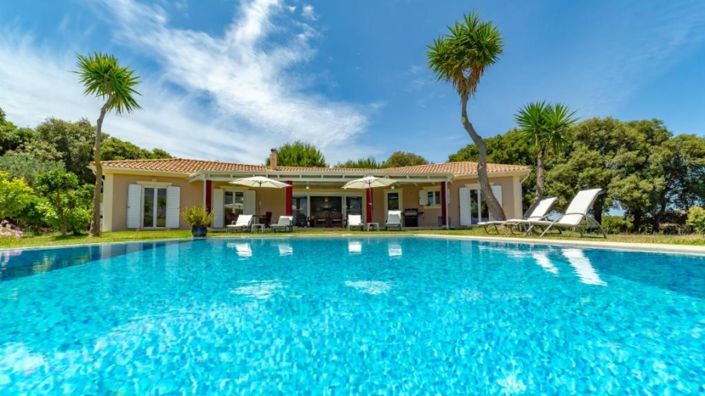The outdoor space is truly magical. Surrounded by tall oak trees providing privacy and tranquility, the garden is lush with various trees and plants, resembling a botanical garden. The property includes a large 48 sq.m. swimming pool for relaxing and leisure, a BBQ area, a parking space with a 35 sq.m. storage room, and a garden with seasonal fruits and vegetables. Location-wise, it is just 1.4 km from the sea, 9 km from the town, and 0.5 km from the village. The airport is only 5.5 km away, offering easy access. The neighborhood is quiet and secure, with discreet neighbors. Enjoy the beauty of nature, peace, and privacy in this unique property. It combines traditional beauty with modern amenities, making it ideal for a family or as a holiday home.