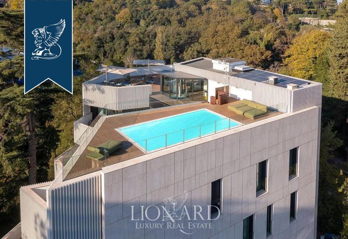 Set in the leafy Monte Mario area, in northern Rome, this remarkable two-level penthouse apartment is in a contemporary villa of only three units, designed by a renowned architectural firm and featured in international design publications. The building is surrounded by a beautifully maintained 4,000 sqm communal park and offers luxury amenities including concierge service, advanced security, a gym, spa with sauna, covered parking and a private cellar.