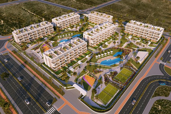 Ce complexe résidentiel moderne se compose de six bâtiments avec rez-de-chaussée et trois étages supérieurs, ainsi que de deux niveaux de sous-sol destinés aux places de parking et aux débarras avec accès direct. Les logements, disponibles avec 2 ou 3 chambres et 2 salles de bain complètes, bénéficient d’une excellente orientation sud/ouest, offrant lumière naturelle et confort tout au long de la journée. Plusieurs typologies sont proposées : jardins privés en rez-de-chaussée, grandes terrasses aux étages intermédiaires et solariums privés dans les penthouses, parfaits pour profiter du climat ensoleillé de Torrevieja.