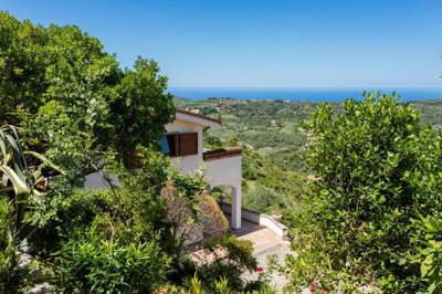 Splendid detached villa, located in a dominant and panoramic position overlooking the sea, just 10 minutes from the most beautiful beaches on the western coast of Sardinia.