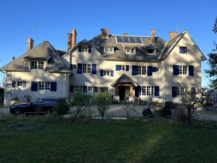 Large, welcoming exceptionally situated 3-story house with stables, outbuildings and beautiful views. The 600 square meter house comprises 11 bedrooms, many with ensuite facilities and fireplaces, numerous bathrooms and toilets, a baronial Drawing Room/Library with large fireplace, modern kitchen equipped with a Falcon range, breakfast room with fireplace, 2 offices with fireplaces, and a full-length cellar. Oil central heating. The house has undergone extensive renovation and modernization over the past two years.