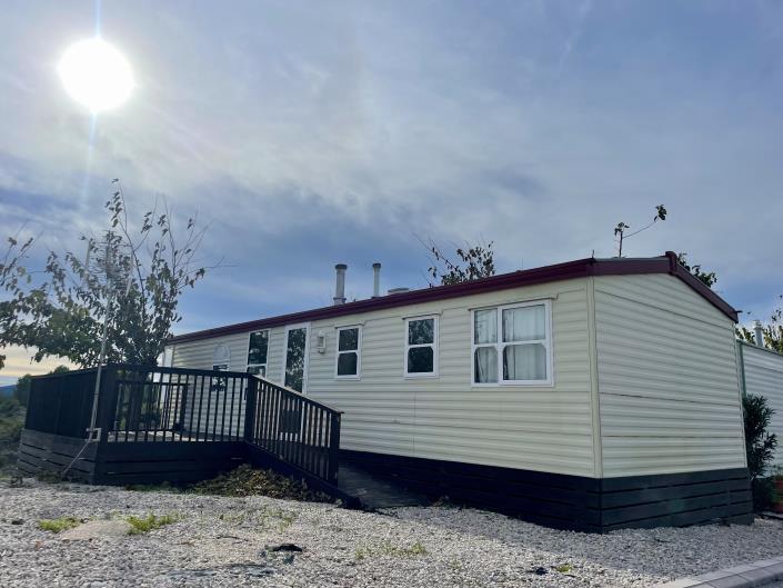 The bathroom is practical and well maintained, offering a full-sized shower, WC, basin with storage, and clean neutral finishes suitable for everyday use. Outside, the property benefits from a fenced and gated deck that provides a private, secure outdoor space. Positioned in a quiet part of the park, the home enjoys peaceful rear views and offers a lovely spot for relaxing or dining outdoors. This Victory Heritage model comes fully furnished, complete with hot/cold air-conditioning, and is ready to enjoy immediately. Terrace size and plot dimensions are TBA.