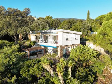 Riviera Immobilier vous présente cette villa à vendre à Cavalaire ! Villa d'environ 150m2 avec magnifique vue mer panoramique du Cap Lardier au Port de Cavalaire, idéalement placée sur 1162m2 de terrain, plage à pied, offrant sur un premier niveau d'environ 95m2 un grand séjour traversant ouvrant sur terrasse face à la Baie de Cavalaire, deux chambres, une salle de bain, une salle d'eau et cuisine indépendante. En rez-de-jardin sur environ 35m2 un appartement de deux pièces (coin cuisine, chambre, salle d'eau et wc) vue mer ainsi qu'une quatrième chambre indépendante d'environ 22m2 avec douche et wc. Garage, parkings extérieurs... Rafraîchissement à prévoir, fort potentiel ! Un cadre privilégié au calme avec une époustouflante vue sur la mer ! Contactez Eddy Paron / (Ei) Rcs Frejus - Les informations sur les risques auxquels ce bien est exposé sont disponibles sur le site Géorisques :