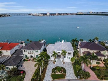 Tierra Verde - Spectacular unobstructed 180 degree water views! Lot size is 85ft of waterfront by 160 feet deep. The home was built in 1992 with four bedrooms, three full baths, one half bath, 5,025sq.ft. of living area, an in-ground pool and spa, a dock with two lifts, and a four car plus garage. The home sustained major damage from Hurricane Milton and is basically down to the studs. All drywall and insulation has been removed. A new Tile roof was installed in 12-2-2024. Extensive balcony and lanai space with panoramic water views. Options here are to do extensive renovations through out or tear down the existing structure and build new. Overall exceptional location with easy access to the Interstate, airports, and vibrant down town St. Petersburg. Biking distance to some of the nicest beaches in Florida and Fort De Sota Park. For the boating enthusiast minutes to the Gulf of Mexico with no bridges and deep water. Absolutely beautiful subdivision with multi-million dollar homes and breathtaking water views.