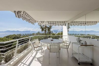 Appartement traversant de 110m2, situé au 6è et avant dernier étage d'une résidence située sur la Croisette et bénéficiant d'une vue panoramique sur la mer, la baie de Cannes et les collines de l'Estérel.