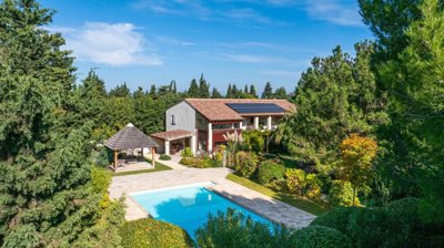 Le coin détente séduit par son ambiance intimiste et sa superbe piscine de 12 x 6 m, entourée d'un parc verdoyant aux essences méditerranéennes et fruitières.