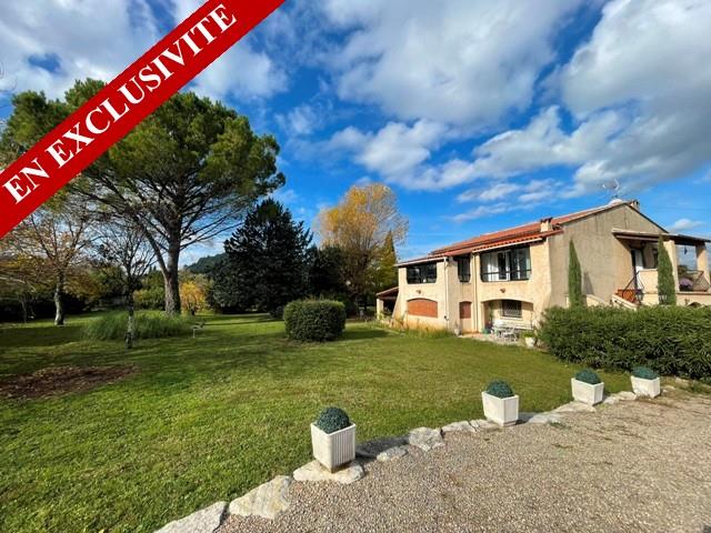 Proche des commodités et sur 2900 m² de terrain plat et arboré, charmante villa sur 2 niveaux offrant en rez de chaussée séjour/salon, 2 chambres, 1 salle d'eau, wc, bureau, buanderie et 2 garages.