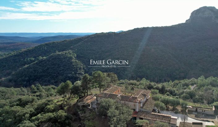 Dans un village préservé et recherché, superbe mas en pierre de 500 m² en position dominante, avec une vue panoramique à 180° sur la vallée et les massifs environnants.