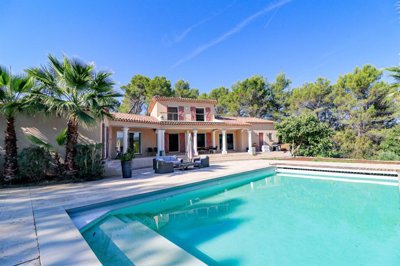 A Draguignan proche de Flayosc Villa avec 5 chambres, Piscine, Garage et dépendances sur plus de 5000m2 de terrain au grand calme. Cette propriété de 285 m2 vous offre au rez-de-jardin : Une superbe Pièce de vie de plus de 70m2 donnant sur terrasses couvertes et piscine, une cuisine aménagée et équipée de 14m2, 3 chambres, une salle d'eau, 2 wc, espace buanderie/cellier. Relié à la maison mais pouvant également être indépendant un bel espace de 75m2 avec une grande salle de sport et une chambre avec sa salle d'eau, wc (possibilité studio indépendant) . A l’étage : une suite parentale de 35m2 avec sa salle d’eau, wc et une terrasse panoramique.