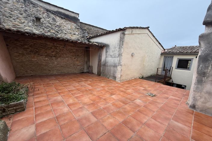 Saint Quentin La Poterie, à pieds des commerces, maison de village env. 98 m² comprenant entrée, salon salle à manger avec poële à bois, cuIsine aménagée Us en accès direct sur terrasse de 40 m² sans aucun vis à vis, 3 chambres dont 2 en rdc et 1 en suite avec sa sde et wc. Wc indépendant. Petit garage et cave avec point d'eau . Chauf gaz de ville. Quartier calme.