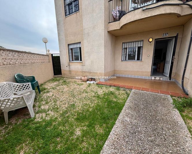 Ce bel appartement d'angle de 2 chambres et 1 salle de bains au rez-de-chaussée est situé dans la populaire Urbanización Residencial Mirador III, La Siesta, Torrevieja.