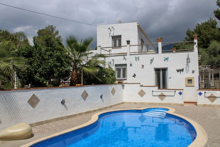 Large magnificent well-planned detached pool villa with two floors and guest apartment in La Gorgoracha, the total area is 327 sqm and accommodates 5 bedrooms and 4 bathrooms + 1 toilet. Tourist license is available and the owner currently has an ongoing rental business of the guest apartment. Located on the A-4133 road and has periodic traffic, excellent connection to the A7 motorway and you will not hear any noise from that road. It only takes 15 minutes to Playa Granada in Motril and just under 40 minutes to Granada airport, to Malaga airport it takes around an hour.