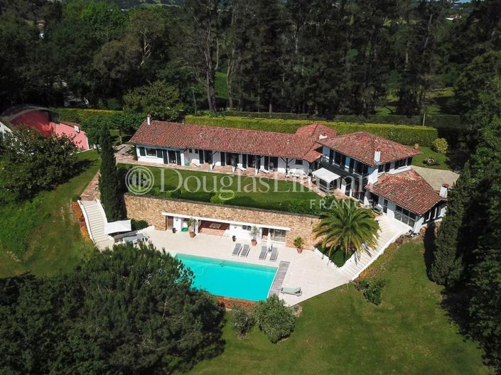 À quelques minutes seulement de Saint-Jean-de-Luz, des plages et du golf, cette villa d’environ 340 m² s’inscrit dans un environnement naturel privilégié, au cœur du Pays basque. Édifiée sur un terrain d’environ 1,2 hectare, elle bénéficie d’une vue panoramique remarquable sur la Rhune et les montagnes environnantes.