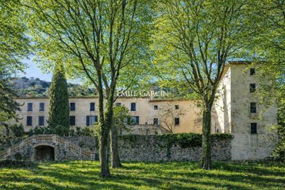 Aux portes d'Anduze, domaine historique d'exception du début du Xix? siècle, niché à flanc de montagne en position dominante au coeur des Cévennes. Environ 400 m² habitables (6 chambres) ouverts sur terrasse et parc arboré, au sein de 62 hectares de collines boisées et prairies. Nombreuses dépendances, magnaneries, bâtiment agricole indépendant, citernes, puits et piscine à rénover. Accès majestueux par allée de platanes centenaires. Calme absolu.