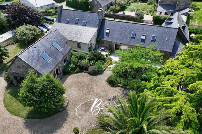 L'ensemble se compose d'une grande maison principale de 240 m² offrant un vaste séjour lumineux équipé d'un poêle à bois et d'un accès sur une terrasse où l'on profite d'un magnifique jardin fleuri de 3500 m². Ce rez-de-chaussée comporte également une cuisine aménagée et équipée, une chambre avec sa salle d'eau privative, une entrée avec Wc et lave mains, des rangements, une chaufferie et une buanderie.