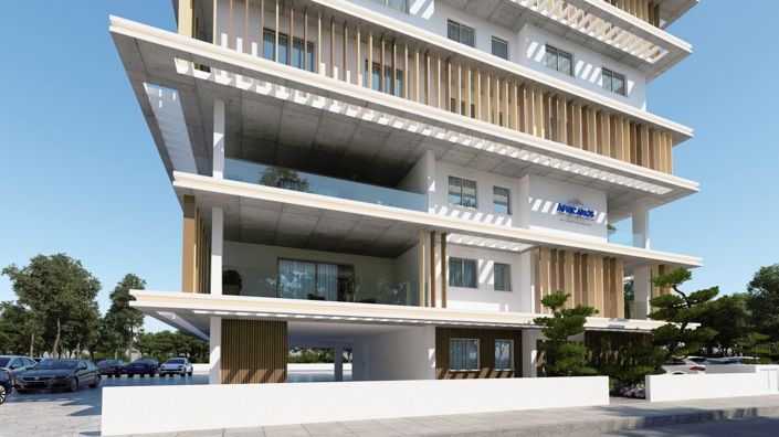 The project boasts sixteen apartments: six one-bedroom and one-bathroom apartments on the first and second floors and ten two-bedroom and two-bathroom apartments on the other floors, all with spacious and contemporary living areas. There are three apartments per floor, which ensures optimum privacy for potential buyers.