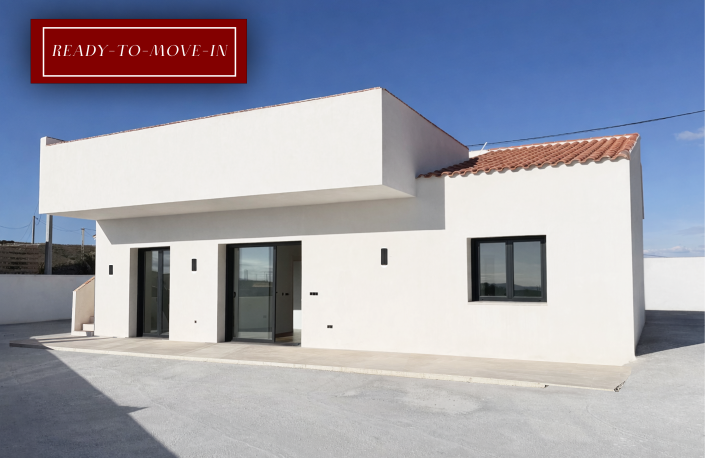 Modern Mediterranean style single-storey villa in Olleres, just 6 km from Albox and close to all amenities. Designed to maximise comfort and natural light, with an easy indoor–outdoor living, open mountain views and no future construction in front.