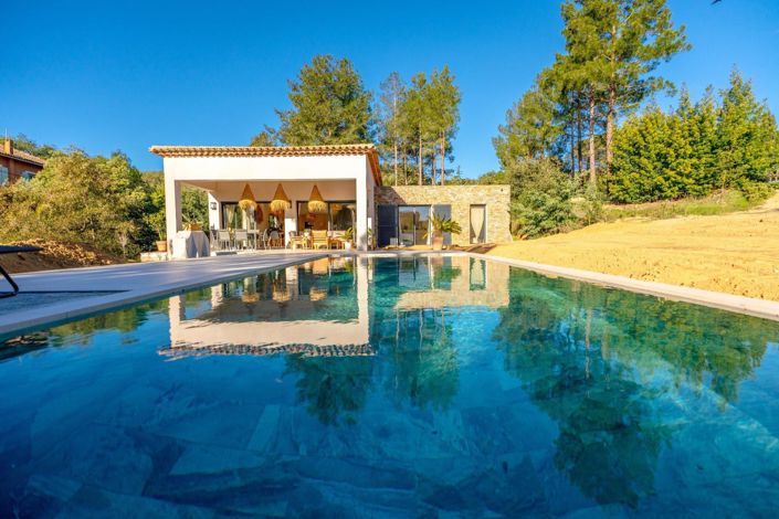 Vente villa Grimaud. Dans le secteur calme et recherché de Beauvallon, à pied des plages, superbe villa contemporaine de 265m² habitables. Elle dispose : Hall d'entrée, wc invités, vaste séjour ouvrant sur terrasse, cuisine us équipée, la suite parentale avec dressing, salle de bains avec douche et wc. En rez-de-jardin : 2 chambres avec salles de bains et une chambre avec salle d'eau. Buanderie et garage complètent les atouts de cette villa. Une piscine agrémente le jardin joliment arboré.