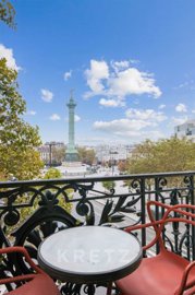 Bastille - Arsenal. Au 4ème étage, avec ascenseur, d'un très bel immeuble Haussmannien, appartement d'environ 143m2 avec vues dégagées sur la place de la Bastille et l'Opéra. Charme de l'ancien avec cheminées, moulures parquet point de Hongrie. Entrée desservant d'une part, un salon d'angle, une salle à manger et un bureau/petite chambre d'autre part, une cuisine indépendante avec coin dînatoire, une suite parentale avec sa salle d'eau, deux grandes chambres, une salle de bains. Deux caves complètent de bien. A quelques pas des commerces du quartier Saint-Paul et du Marais. Professions libérales autorisées.