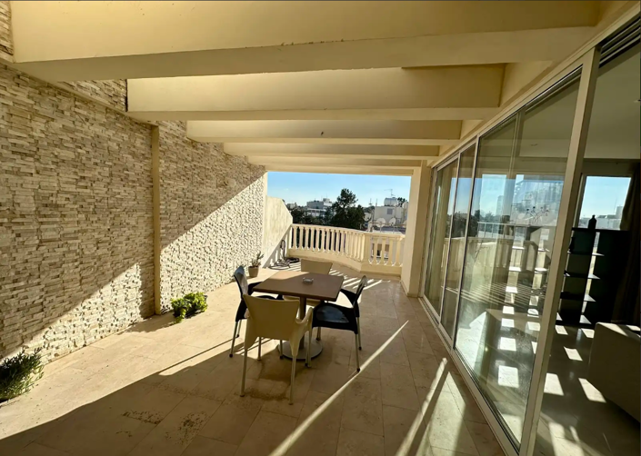 The penthouse includes two generously sized bedrooms, with the master bedroom offering privacy and comfort. Large covered verandas provide ample outdoor space, perfect for relaxing or entertaining while enjoying spectacular city views. High ceilings, underfloor heating, air-conditioning throughout, and premium finishes enhance the sense of space and sophistication.