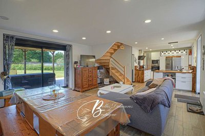 Nichée au centre du village, entre son café chaleureux et son commerce, cette propriété baigne dans une atmosphère paisible. Tout autour, la campagne s'étend, vallonnée et boisée, offrant un écrin de nature propice à la détente et à l'évasion.
