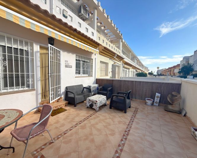 Cette maison de ville orientée plein sud se situe dans le charmant complexe Vista Mar , doté d'une superbe piscine commune et de jardins paysagers , à seulement 400 mètres de la promenade de Cabo Roig . Profitez d'un accès facile à la plage Pavillon Bleu, au port de plaisance, aux bars, aux restaurants et aux commerces de proximité .