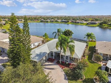 One or more photo(s) has been virtually staged. Beautiful well maintained Rhapsody model located in a quiet neighborhood of Solivita, offering expansive water views from the screened lanai and a peaceful conservation view from the front. This thoughtfully designed home features 3 bedrooms, a living room, dining room, and a Florida room—ideal for both everyday comfort and entertaining. Enter through elegant double leaded glass doors into an open and inviting interior. The gourmet kitchen is a chef’s dream, complete with a cook-top, double ovens, glass-front cabinetry, an eat-at bar, and a center island. The spacious primary bedroom enjoys a private water view and features an en-suite bathroom with a large walk-in closet, oversized walk-in shower, soaking tub, and dual vanities. The living room opens to the covered and screened lanai through sliding glass doors, while the Florida room showcases a custom built-in mirrored shelving cabinet and additional water views. The extended screened lanai is truly the entertainment centerpiece of this home, featuring a gazebo extension and a beautifully established Koi pond with a walk-over bridge—perfect for relaxing or hosting guests. There is no carpet in the home. All living areas feature luxury vinyl plank flooring and crown molding throughout. The laundry room includes custom cabinetry and a utility sink. The 2-car garage offers extra storage and pull-down stairs leading to a floored attic. Upgrades include: In-wall pest control system, water softener, Central Vacume System, HVAC (2023), water heater (2020), and roof (2016). Golf cart and select furniture are optional. This exceptional home truly captures the Solivita lifestyle—don’t miss it! Solivita is a premier 55+ community, offering residents an exceptional lifestyle with state-of-the-art amenities. Enjoy a fully equipped fitness center, dance and aerobics studios, and an impressive array of recreational options including 14 heated swimming pools, two heated spas, tennis courts, pickleball courts, shuffleboard, bocce ball, billiards, and an art gallery. The community also features three on-site restaurants and two championship 18-hole golf courses. With a full calendar of activities and events, there’s always something new to explore and enjoy. This home is conveniently located near a hospital and medical office complex, shopping, dining, and a brand-new shopping center—featuring Sprouts, Outback and other popular retailers—offering the perfect balance of privacy, convenience, and an active lifestyle.
