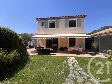 Exclusivité - Idéalement située au calme absolu dans un domaine fermé proche de Mougins School, la clinique Tzanck, le Golf Cannes Mougins, ainsi que les accès pour Sophia Antipolis et grands axes, maison individuelle 4 pièces de 107m² habitables sur un terrain de 338m². La maison est très bien entretenue et comprend une entrée qui donne sur un grand séjour de 40m² avec cuisine américaine, et une chambre avec salle de bains attenante. Toutes les pièces donnent sur la terrasse de 27m² et le jardin. A l'étage deux chambres (à l'origine trois) dont une avec salle de bains et une salle de douche indépendante. Rare A 25 minutes de l'aéroport de Nice, 15 minutes de Cannes. Montant estimé des dépenses annuelles d'énergie pour un usage standard entre 1194.0 € et 1616.0 € indexées aux années (abonnements compris). Bien proposé par Philippe Huynh Ei, agent commercial (Rsac )