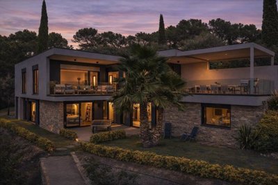 Au calme absolu, dans un quartier résidentiel et bénéficiant d'une belle vue dégagée, cette très belle villa contemporaine aux prestations raffinées est composée d'un superbe séjour prolongé par une terrasse et sa piscine, de 4 chambres en suite dont une maître exceptionnelle et un espace bureau. La villa est agrémentée d'une piscine de 15 mètres chauffé sur un terrain de 2902m².