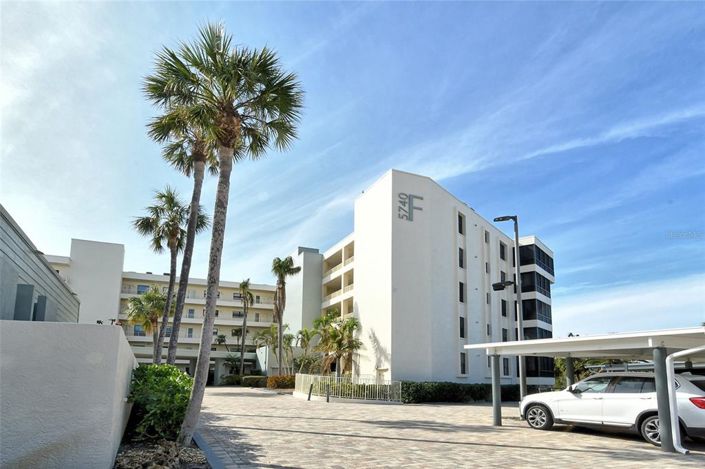 This gulf front sophisticated end unit with lots of natural light and forever simply breathtaking gulf & beach views is a magnificent beach getaway in a gated community! Both luxurious & elegant this 2 bedroom, 2 bath condominium simply wows you! The attractive porcelain flooring adds a glow throughout the entire space. The spacious well designed kitchen is a show stopper featuring exquisite custom wood cabinetry, complimented by beautiful granite countertops & top of the line stainless steel appliances. The bathrooms provide a chic retreat, furnished with inviting finishes & fixtures inclusive of a jetted spa in the main bath. The large laundry room with a sink & extra storage adds to the easy & convenient resort living. Enjoy the beach views while watching some beach volleyball from your living room. Close to the action, yet perfectly private. The large sliding windows give the option to enjoy fresh gulf breezes while taking in the breathtaking beach & blue water & sky. This is one of very few places that offer gulf front views & beach access out your door. Gulf & Bay Condominiums are situated on 32 acres of delightful tropical landscaped property on Siesta Beach with a complete resort like feel & 800 feet of private beach, 3 swimming pools, pickleball, tennis, racquetball, basketball, shuffleboard & an indoor hot tub! Make use of all the additional amenities inclusive of the fitness center, numerous BBQ areas, electric vehicle stations & car wash area. This unit has a designated covered parking spot, acres to roam and that world class white sand beach to walk to your hearts content then fall asleep to the sound of the waves rolling in. There is a guest suite can be reserved exclusively by owners for family & friends. Just minutes away is a nice variety of restaurants & shops in Siesta Village. Whether you're seeking a full-time residence, vacation retreat, or an investment opportunity, this exceptional condominium is a rare find. Don't miss your chance to own a slice of paradise on Siesta Beach!